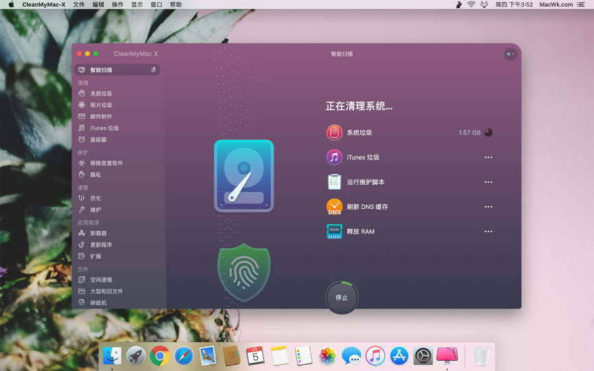 Clean My Mac4中的系统优化,他不仅仅只是帮助您进行系统垃圾的清理,同时还能随时监测系统状态,提高检索效率,确保Mac性能最优化。运行脚本维护、修复磁盘权限、邮件加速、重启数据库服务、重建索引焦点、刷新DNS缓存等
